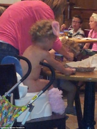 Ms Decker was so shocked by the mother’s actions that she decided to take a photo of one of the young girls sitting in her portable potty seat before she put it on Facebook.
