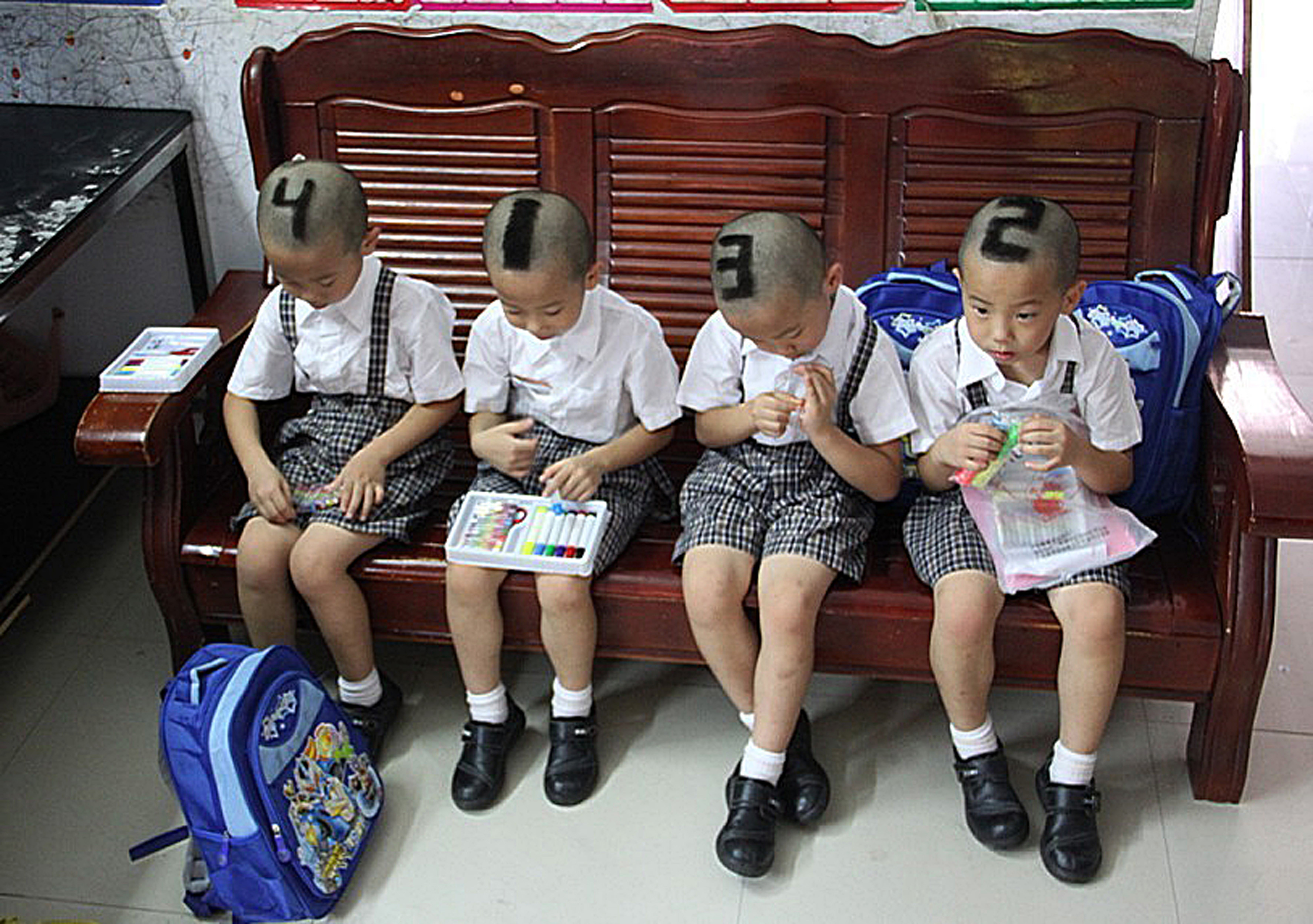 According to Chinese news website NOW News, Tan Chaoyun from Shenzhen, China, has shaved numbers into the heads of her 6-year-old sons to help teachers differentiate them.
