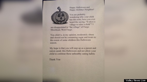 Tags: Body Image, Childhood Obesity, Fat Letter Halloween Halloween Fat Letter, Fat Letter Kids, Fat Letter Morbidly Obese Kids, Halloween, North Dakota Woman Fat Letter, North Dakota Woman Letter, Nutrition, Parenting, Woman Fat Letter Halloween