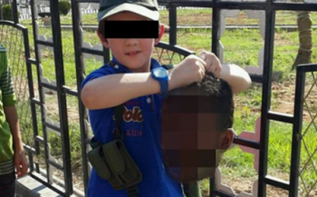 But it is the image that security agencies believe is Sharrouf’s son, struggling to hold the head of the decapitated soldier, that is utterly shocking. The little boy is dressed as if heading out for a picnic. He is wearing a pair of checked pants and a blue shirt, with the insignia, Polo Golf Kids. He has a green cap on his head and a blue plastic watch on. Over his shoulders he has ammunition pouches.