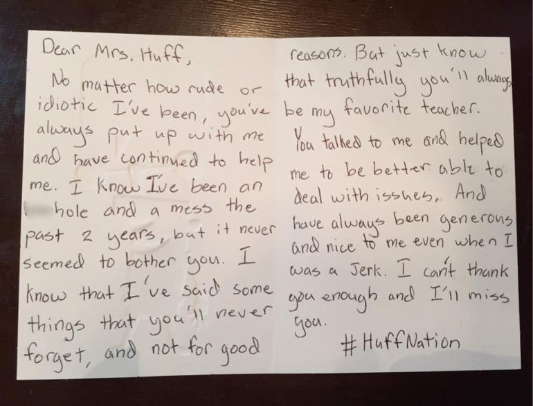 Sometimes you go home from work wondering if you’ve made any difference with certain students. Sometimes, when you least expect it, they surprise you with candid confessions like the one above.