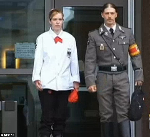Bethanie White, a member of his organization ‘Hitler’s Order’, was with Campbell at court – also covered in swastikas.