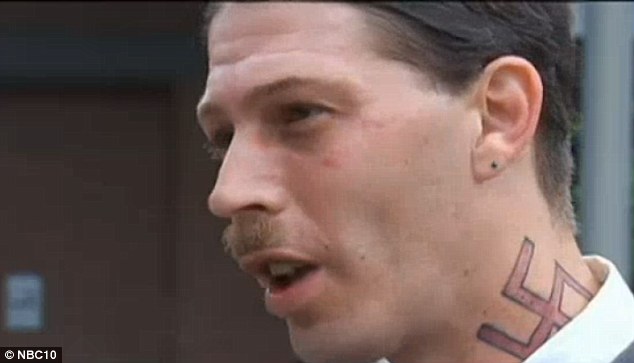 Campbell, a swastika tattoo clearly showing on his neck, told NBC10: ‘I’m going to tell the judge, I love my children. I wanna be a father, let me be it.